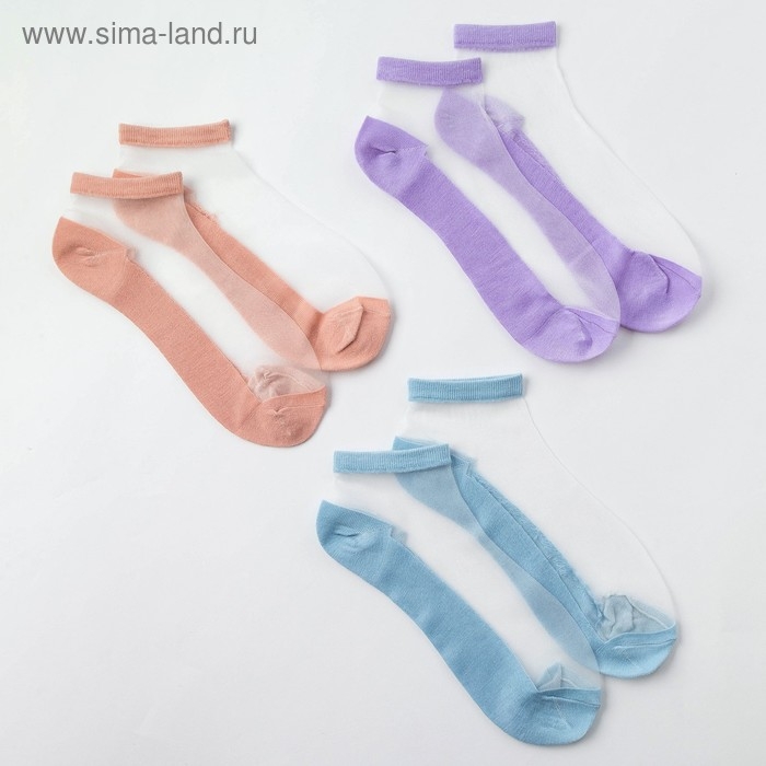Набор стеклянных носков 3 пары, р-р 35-37 (22-25 см), цв.роз/гол/лаванда