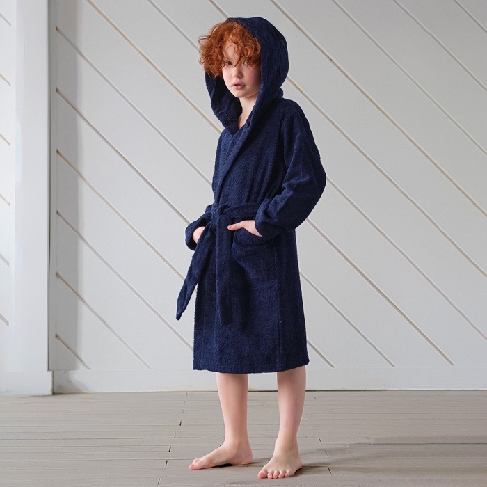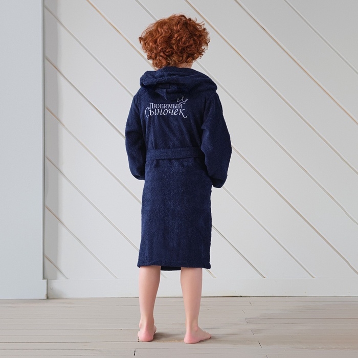Халат махровый детский "Любимый сыночек" р-р 34 (122-128 см), синий