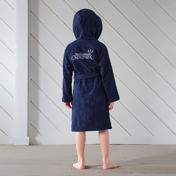 Халат махровый детский "Любимый сыночек" р-р 34 (122-128 см), синий