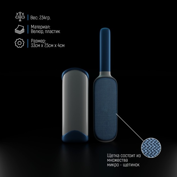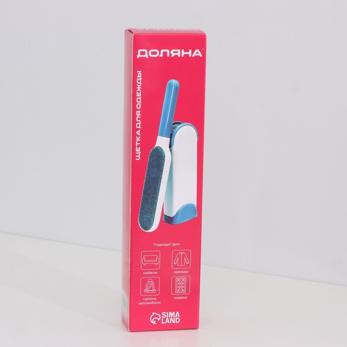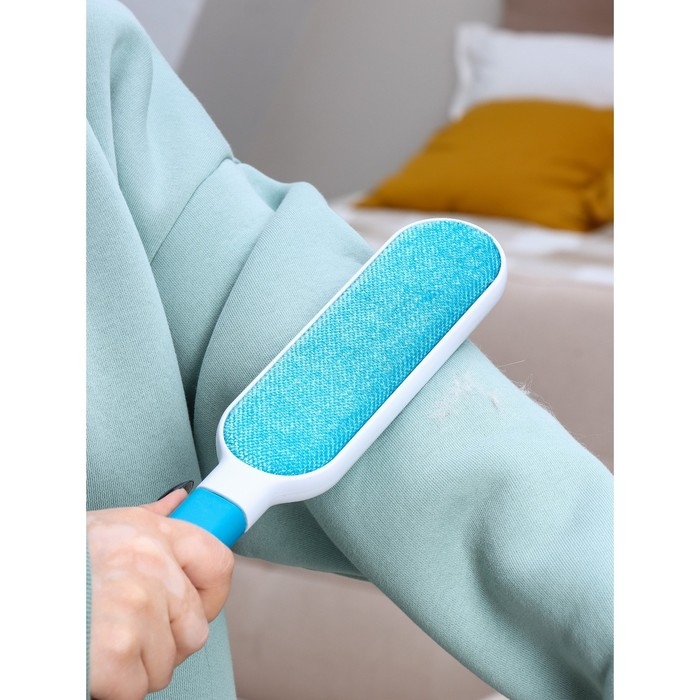 Щётка для удаления шерсти и волос с одежды и мебели с ручкой Доляна, 33×7,5×5 см, цвет синий