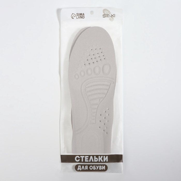 Стельки для обуви, спортивные, универсальные, амортизирующие, дышащие, р-р RU до 46 (р-р Пр-ля до 46), 29 см, пара, цвет серый