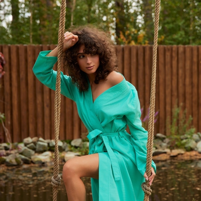 Халат вафельный женский удлинённый Экономь и Я размер 42-44, цвет бирюзовый, 100% хлопок, 200г/м2