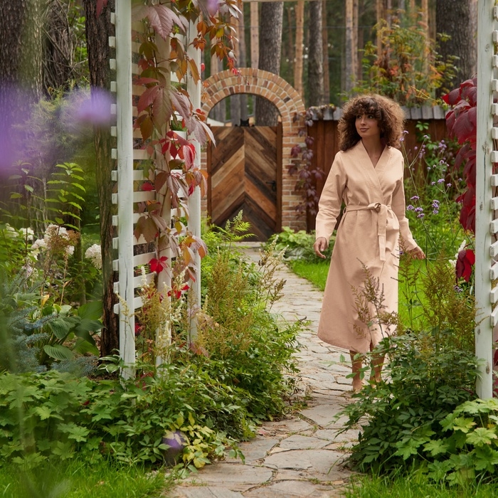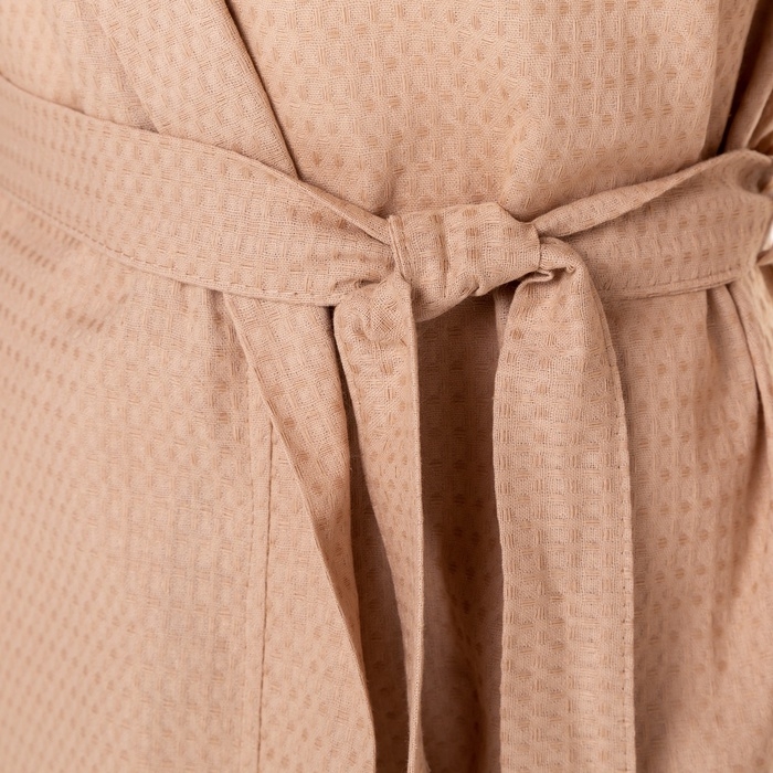 Халат вафельный женский удлинённый Экономь и Я размер 54-56, цвет бежевый, 100% хлопок, 200г/м2