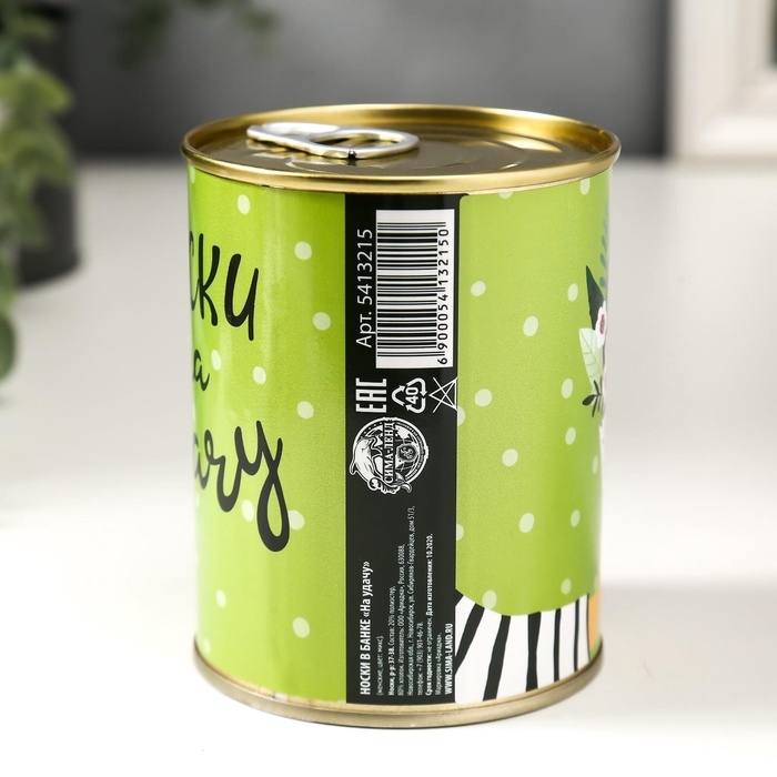Подарочные носки в банке «На удачу», (внутри носки женские, цвет белый)