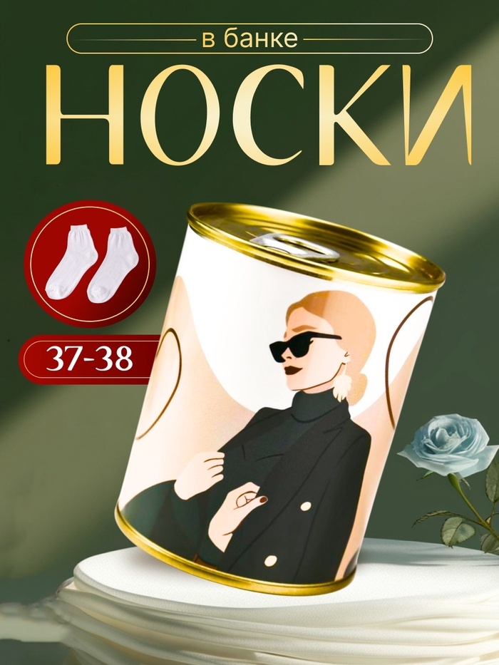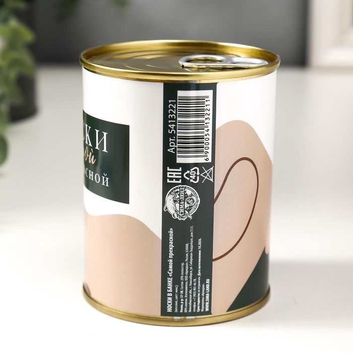 Подарочные носки в банке «Самой прекрасной», (внутри носки женские, цвет белый)