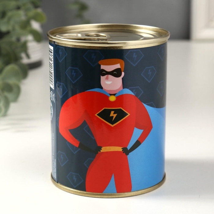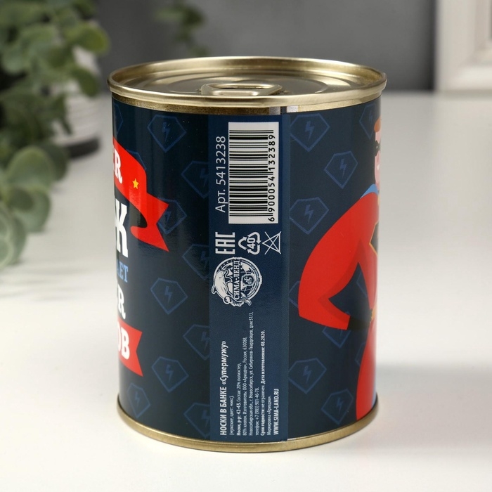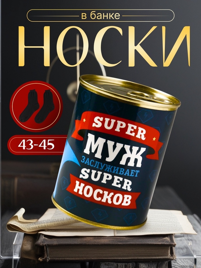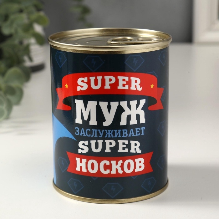Подарочные носки в банке «Супермужу», (внутри носки мужские, цвет чёрный)