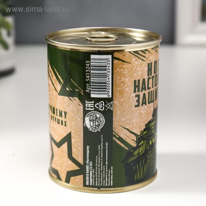Подарочные носки в банке «Настоящему защитнику 23.02», (внутри носки мужские, цвет чёрный)