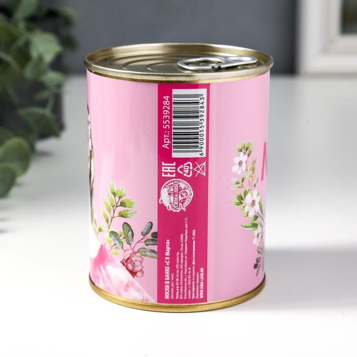 Носки в банке "С 8 марта" (внутри носки женские, цвет белый)