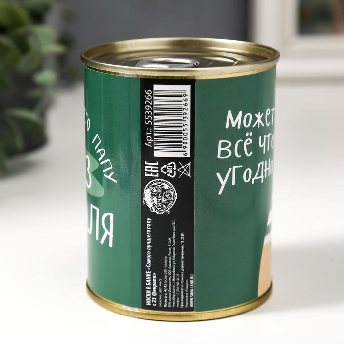 Подарочные носки в банке «Самого лучшего папу с 23 февраля», (внутри носки мужские, цвет чёрный)