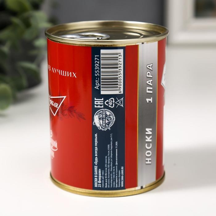 Подарочные носки в банке «Будь всегда первым. 23 февраля», (внутри носки мужские, цвет чёрный)