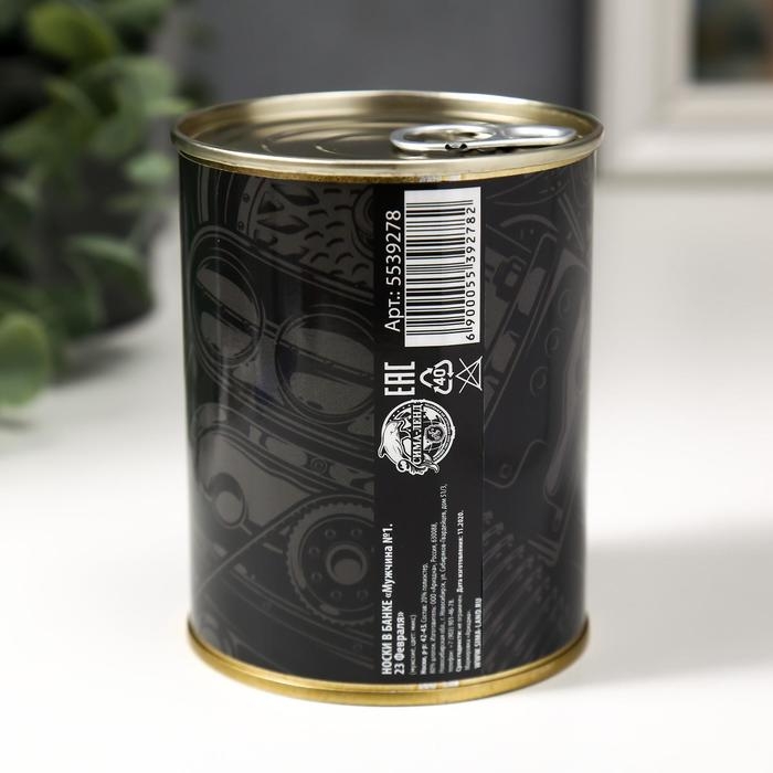 Подарочные носки в банке «Мужчина №1. 23 февраля», (внутри носки мужские, цвет чёрный)