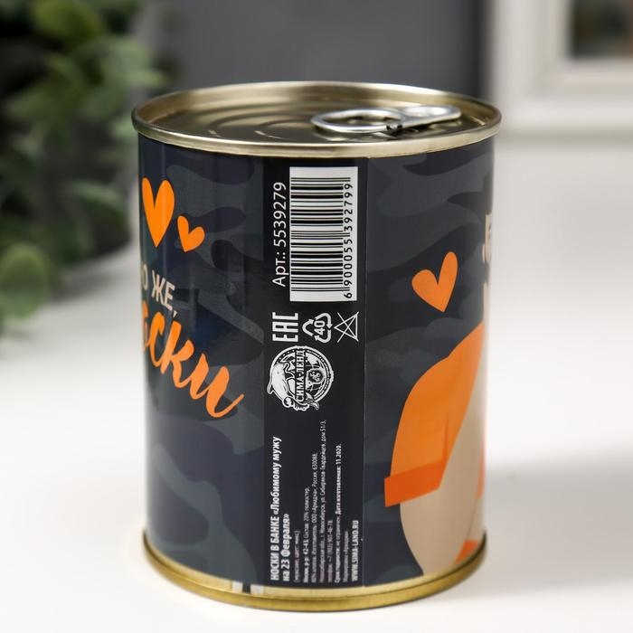 Подарочные носки в банке «Любимому мужу на 23 февраля», (внутри носки мужские, цвет чёрный)