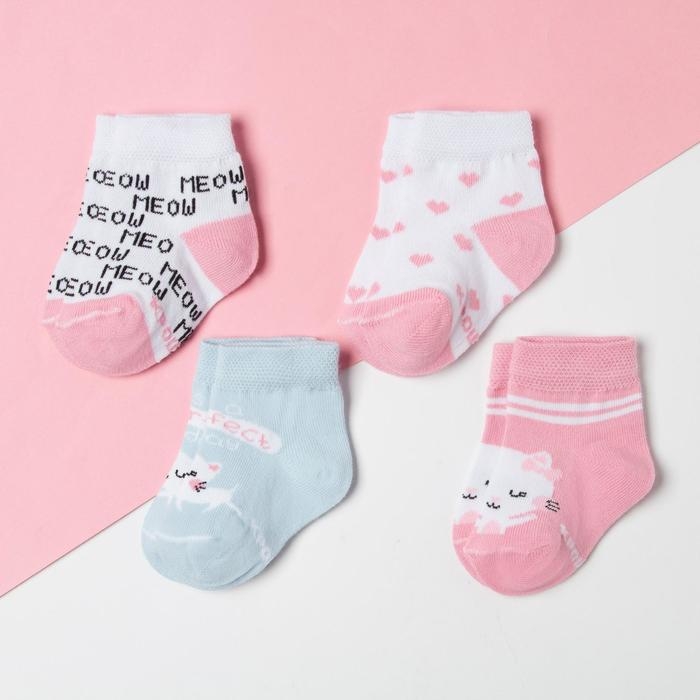 Набор носков Крошка Я "Котик", 4 пары, 6-8 см