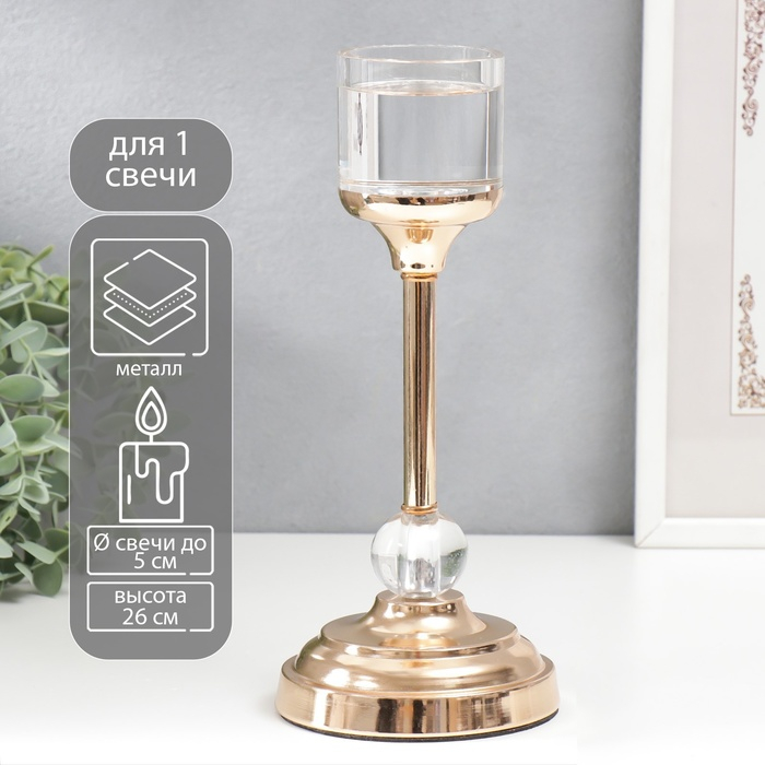 Подсвечник металл на 1 свечу "Прозрачность"МИКС золото 26х12х12 см