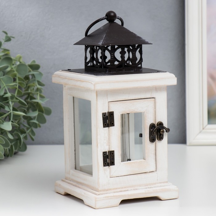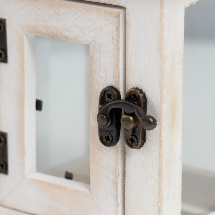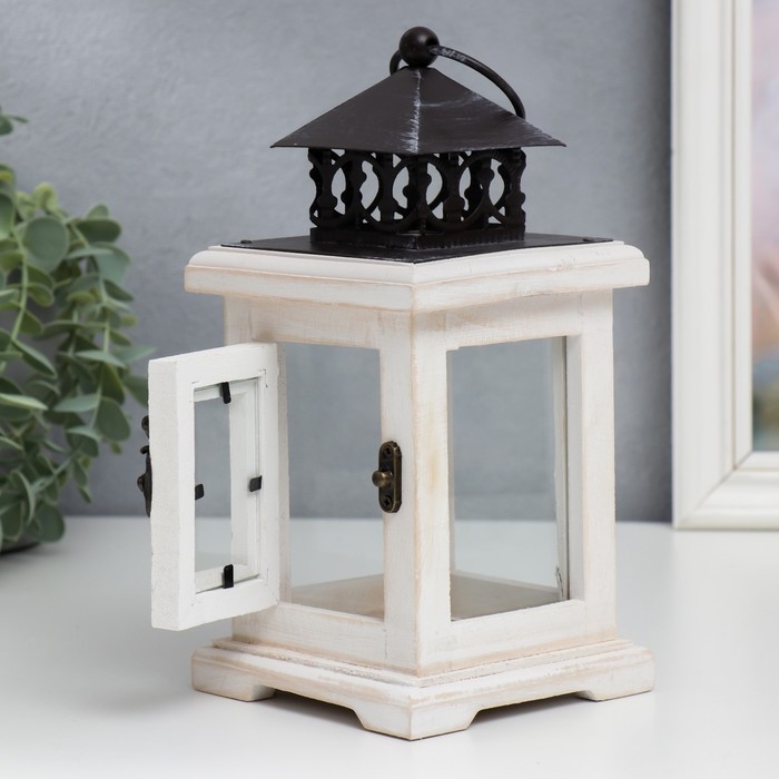 Подсвечник дерево на 1 свечу "Фонарь с дверцей" белый состаренный 22х11,2х11,2 см