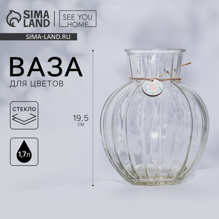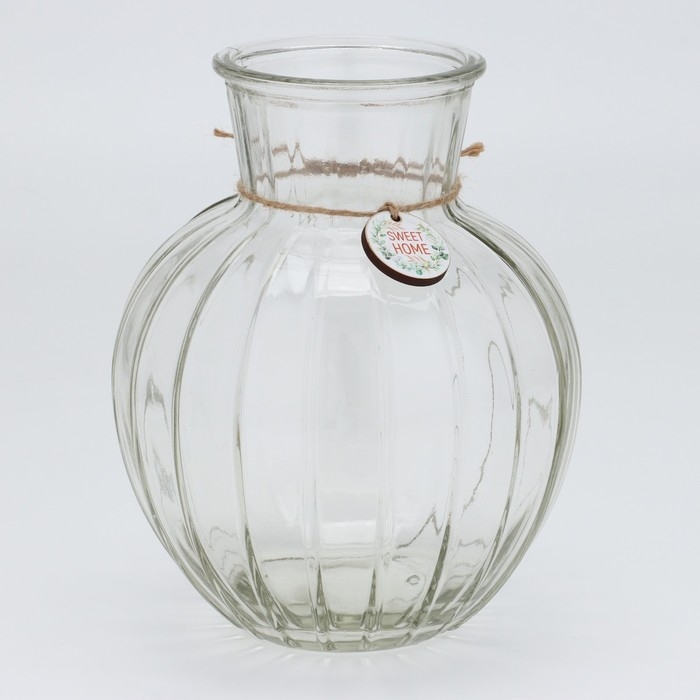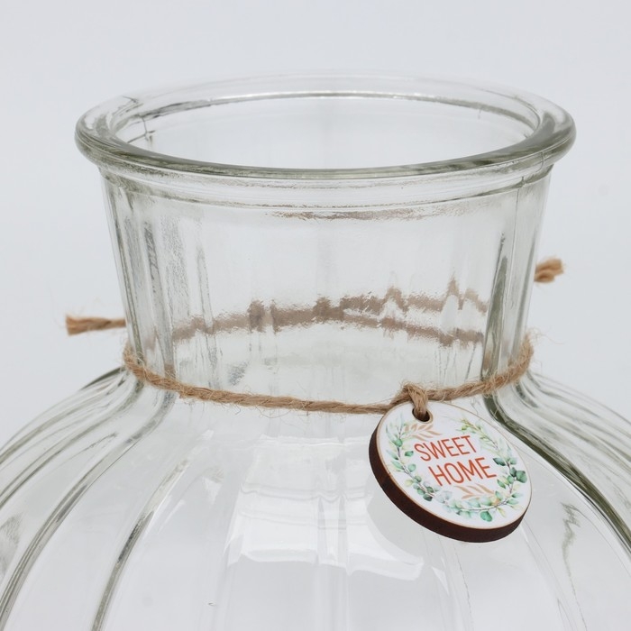 На вазе висит ярлык с надписью «Sweet home», привязанный к ней веревкой. Ваза идеально подойдет для украшения вашего дома.