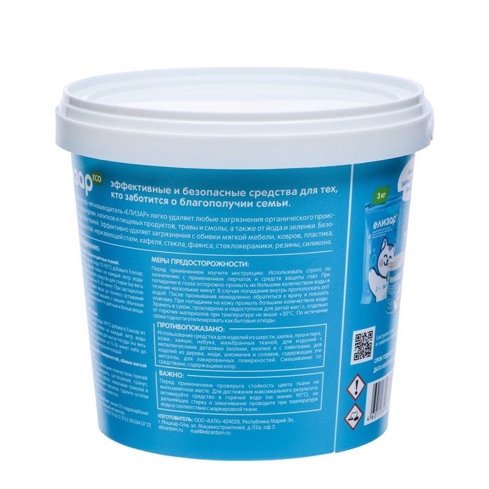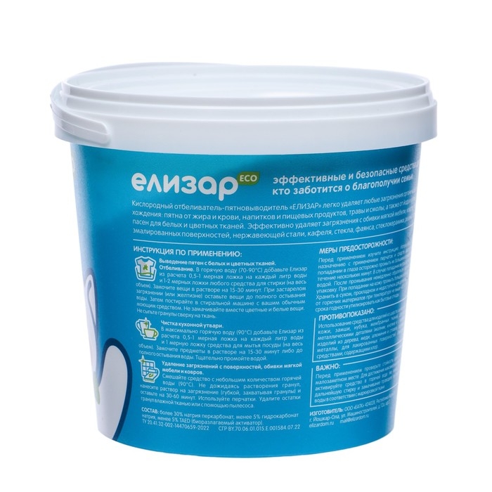Кислородный пятновыводитель «Елизар» 2 в 1 для цветного и белого белья, экологичное, 1 кг