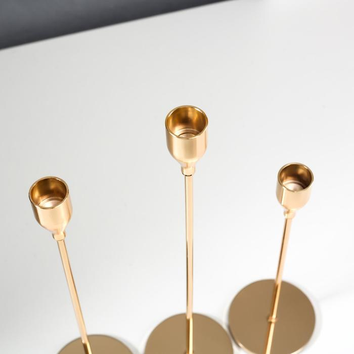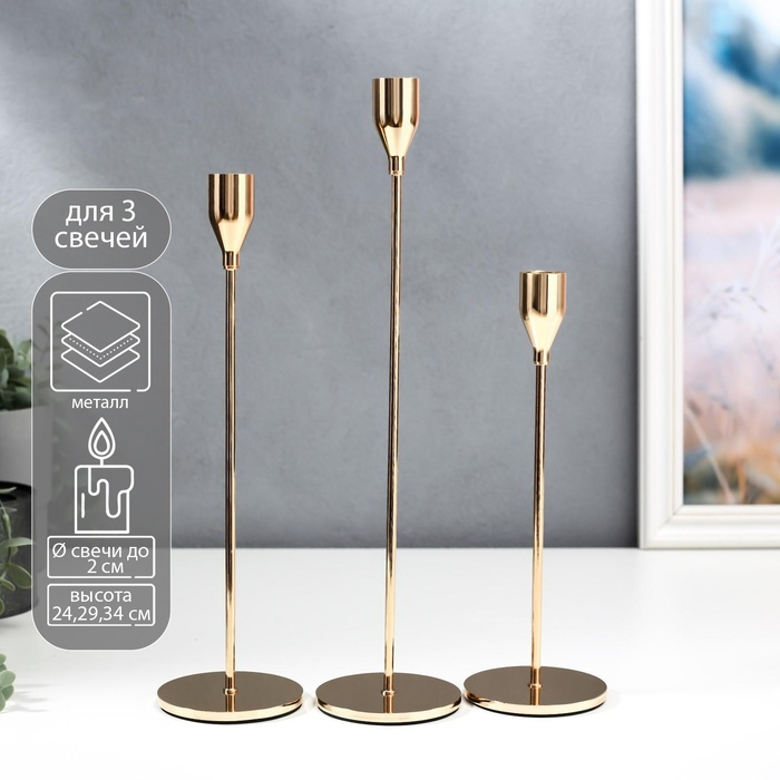 Подсвечник металл "Классика" набор 3 шт золото 24,5х7,7х7,7, 29,5х7,7х7,7, 34,5х7,7х7,7 см