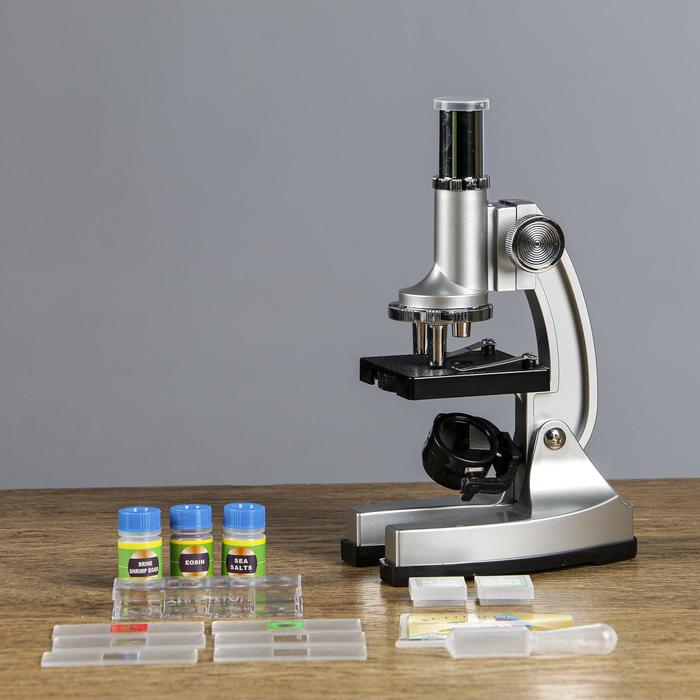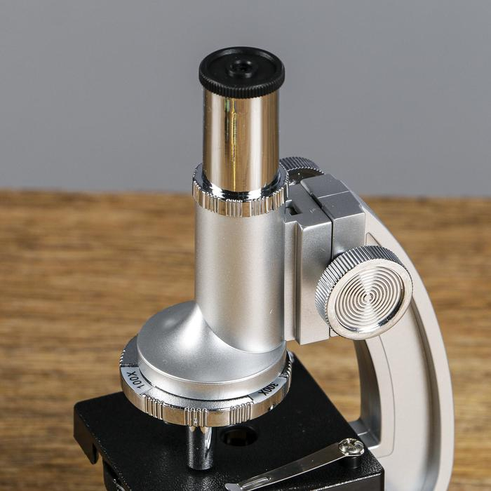 Микроскоп "Исследование", кратность увеличения 600х, 300х, 100х, с подсветкой, серебристый