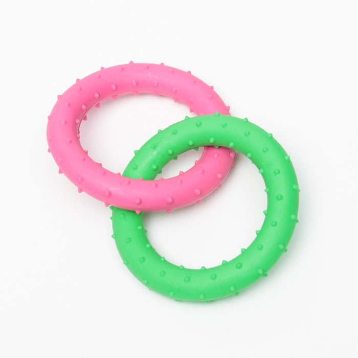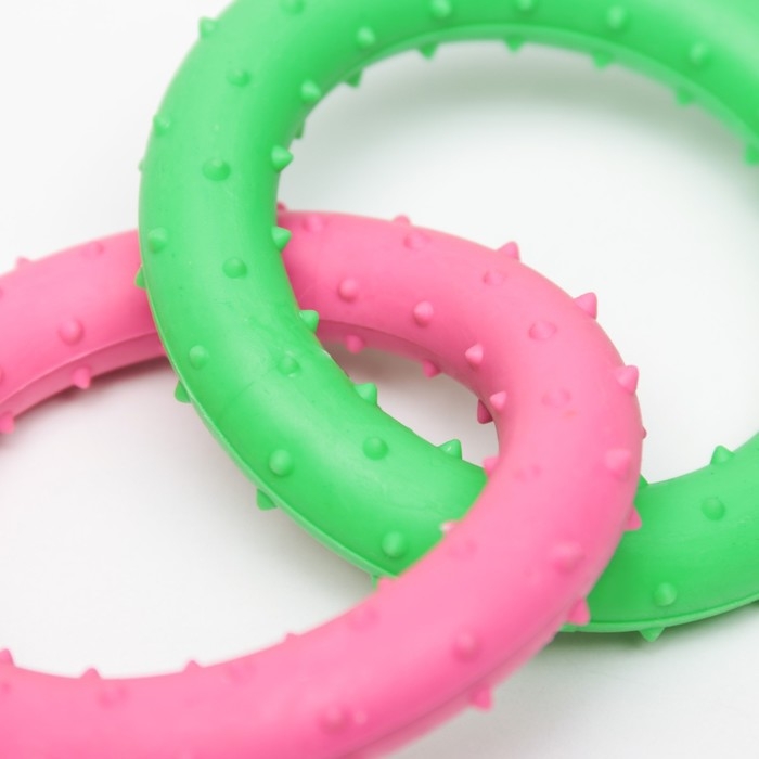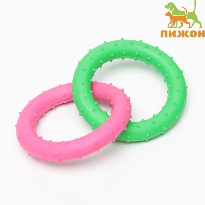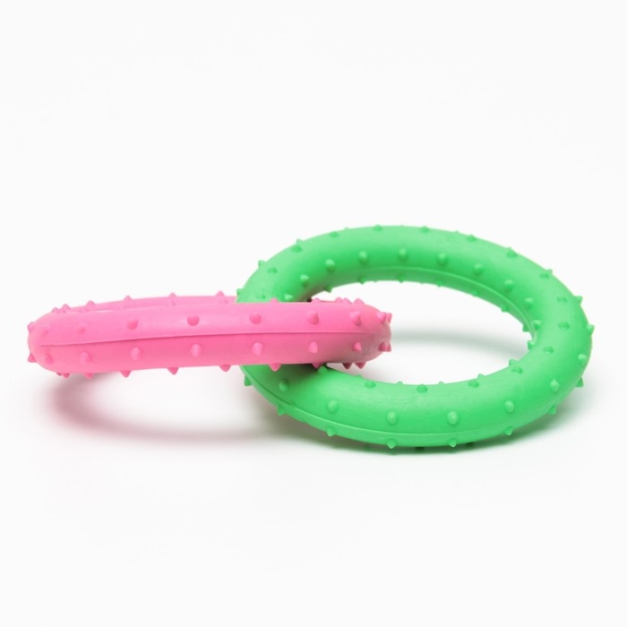 Игрушка жевательная суперпрочная "Два кольца", зелёная/розовая