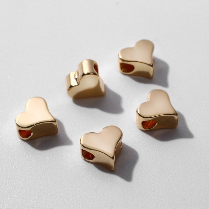 Бусина-разделитель родированная «Сердечко», 6×6 мм, d(вн.)=2мм, цвет золото