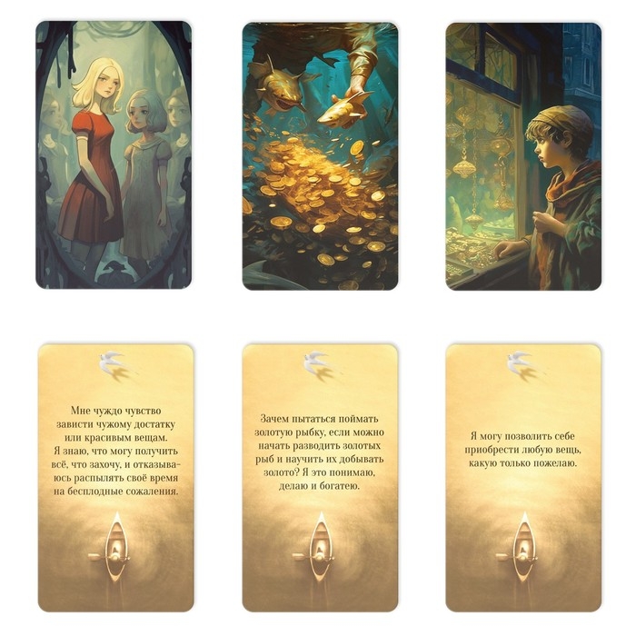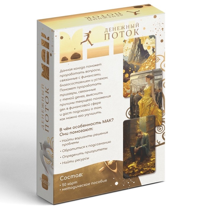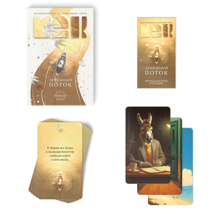 Наша колода метафорических ассоциативных карт «Денежный поток» станет незаменимым помощником в финансовых вопросах. С ней вы найдете ответы на вопросы из сферы благосостояния, наладите отношения с партнерами по бизнесу, а также отыщите явные и скрытые ресурсы для личностного роста. МАК помогают в словесной форме выразить живущие внутри нас ощущения, определить истинные мотивы, желания, цели и отыскать внутри себя вдохновение и поддержку. Главное при работе с картами – искреннее намерение, ведь только так вы увидите, как много карты знают о вашем внутреннем мире.