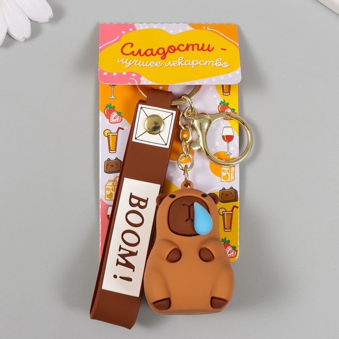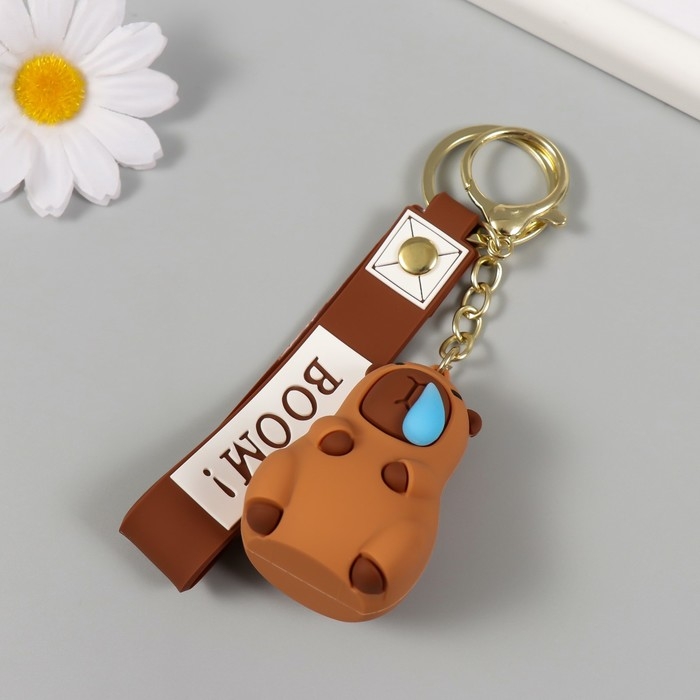 Брелок резина с карабином, ремешком "Капибара с сопелькой" 3,7х3,7х5,5 см
