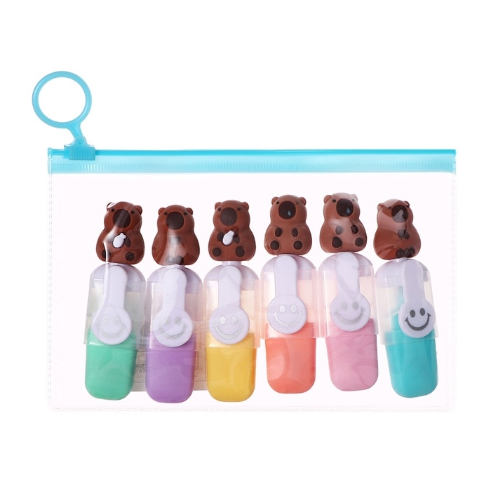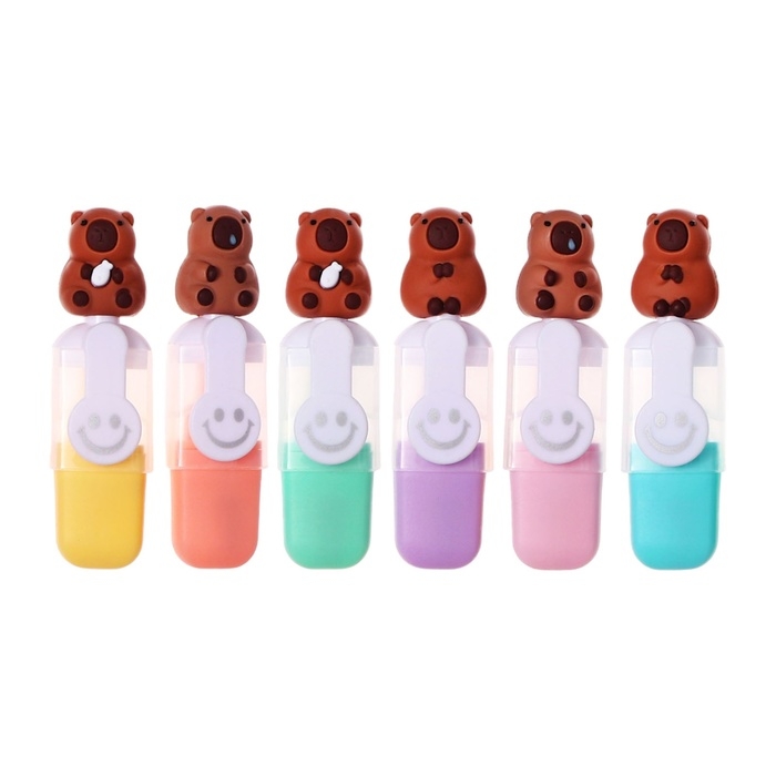Набор маркеров текстовыделителей 6 штук 6 цветов, в пенале на молнии Капибары
