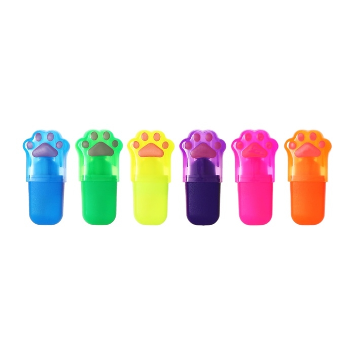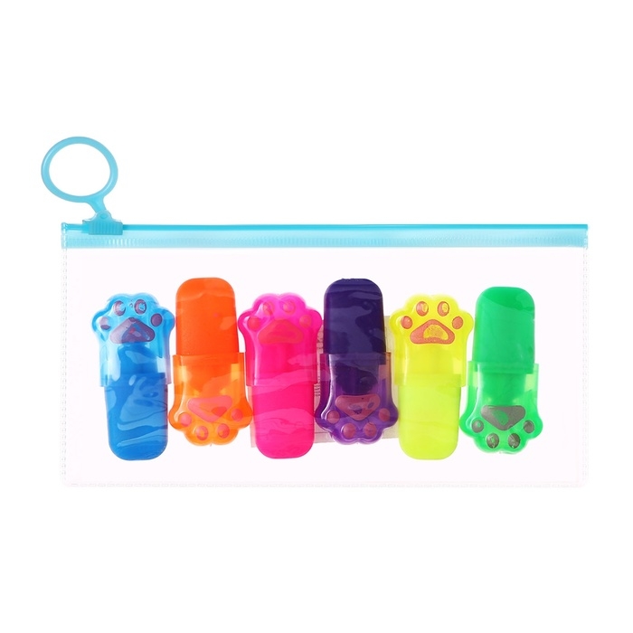 Набор маркеров текстовыделителей 6 штук 6 цветов, в пенале на молнии Лапки неон