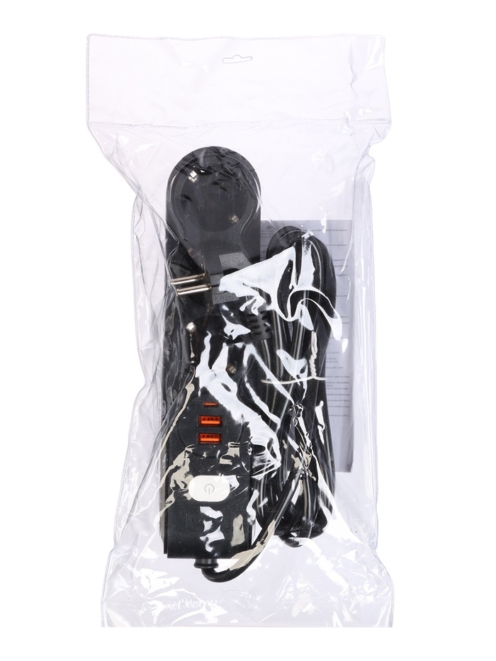 Удлинитель 3 розетки, 3м, 1300 Вт, 3х0.75 мм2, 2 USB-A+USB-C, 2.1А, с з/к, с выкл.
