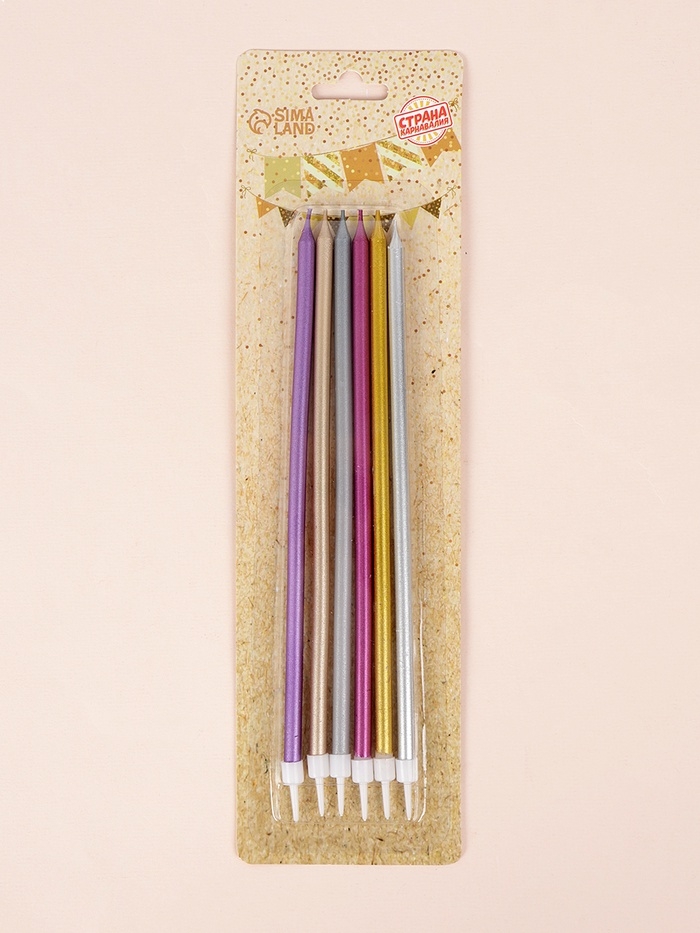 Свечи в торт "Высокий Ройс", 6 шт, разноцветные