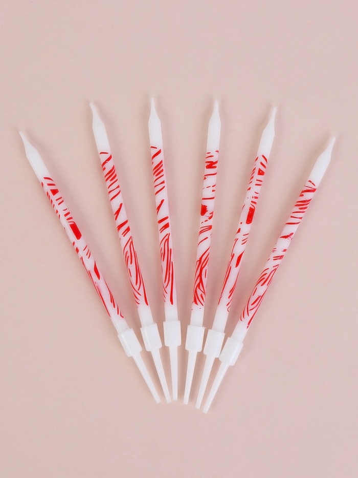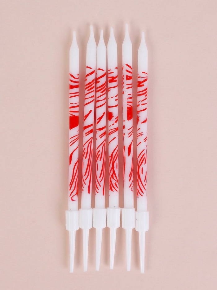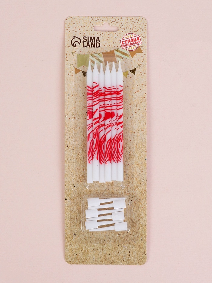 Свечи для торта "Волнистые линии", 6 шт, белые с красным