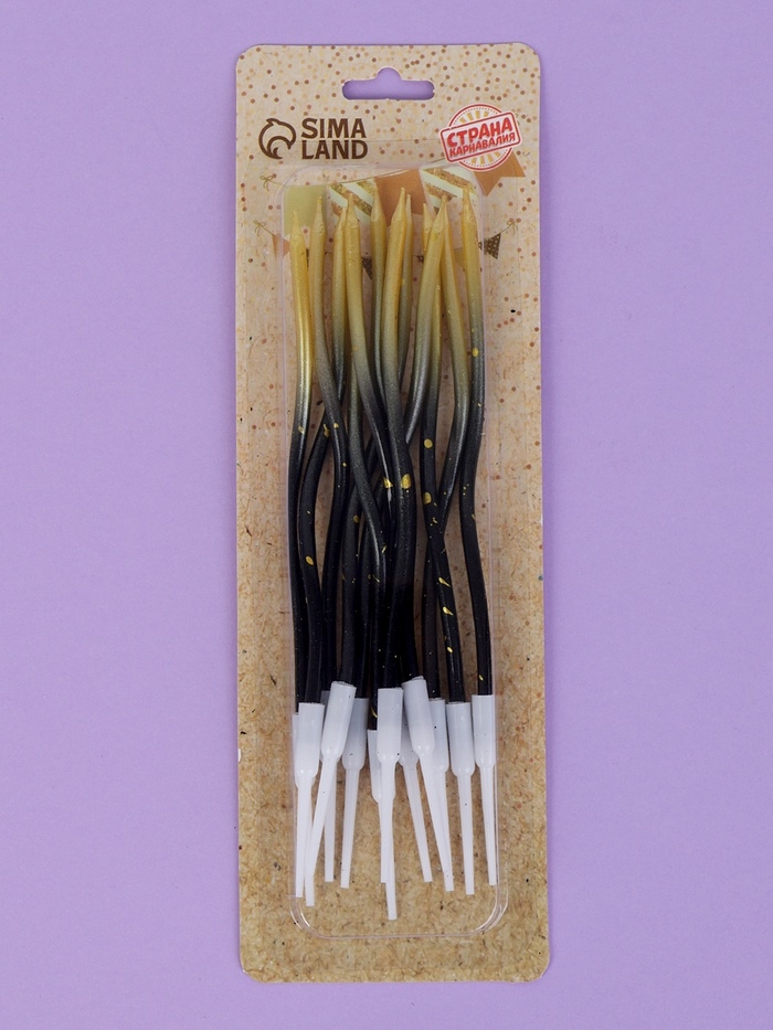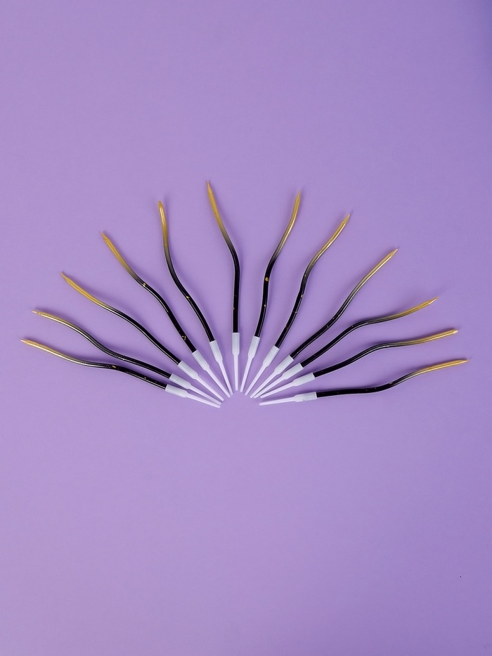 Свечи для торта "Серпантин", 12 шт, градиент золотой и черный