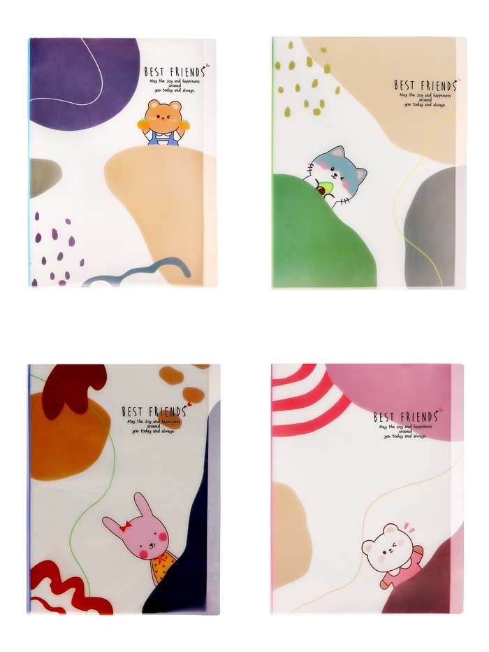 Папка формат А4 с 30 прозрачными файлами МИКС Зверята