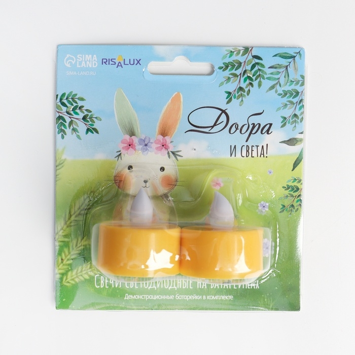 Светодиодные свечи, ночники LED RISALUX «Добра и света!» набор 2 шт., жёлтые, RGB, 3.5×3.5×4 см