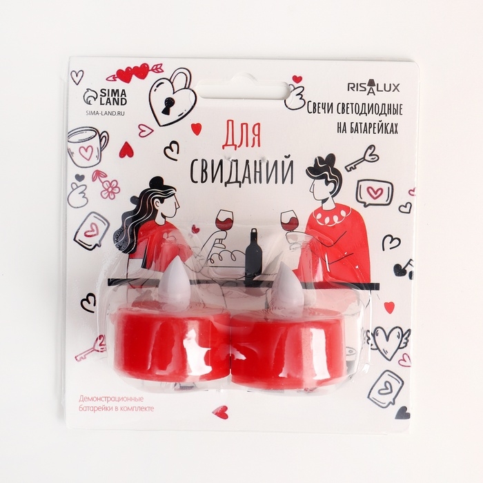 Светодиодные свечи, ночники LED RISALUX «Для свиданий» набор 2 шт., красные, RGB, 3.5×3.5×4 см