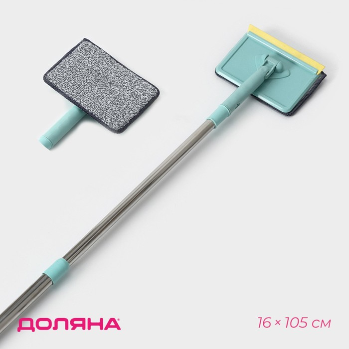 Щётка для окон Доляна, телескопическая ручка 54(86) см, поворотная головка, насадка из микрофибры 14×16 см, цвет синий