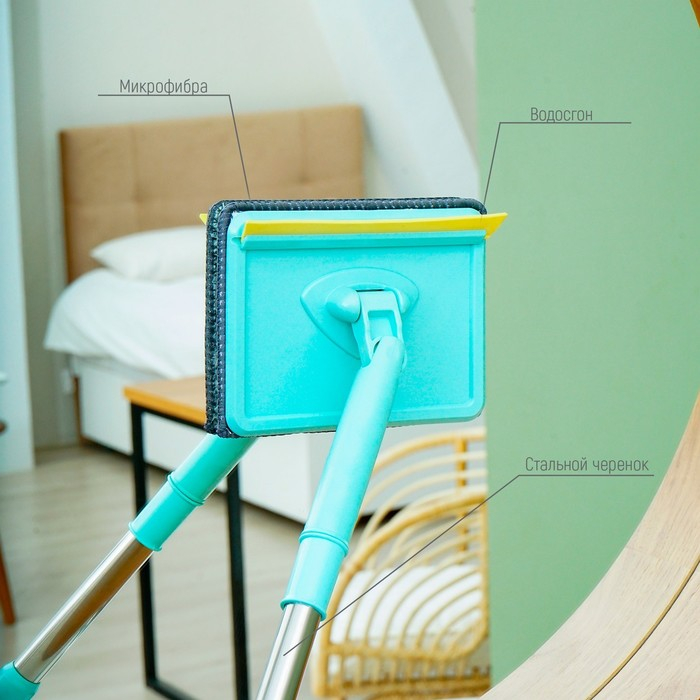 Щётка для окон Доляна «Элит», целлюлозная губка 21×4 см, поворотный силиконовый водосгон27,5, 28×34×6 см, цвет МИКС