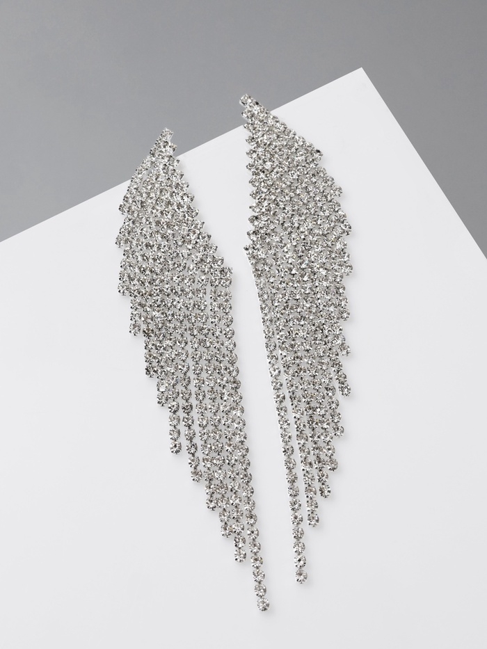 Серьги висячие со стразами «Вечное сияние» крылья, цвет белый в серебре