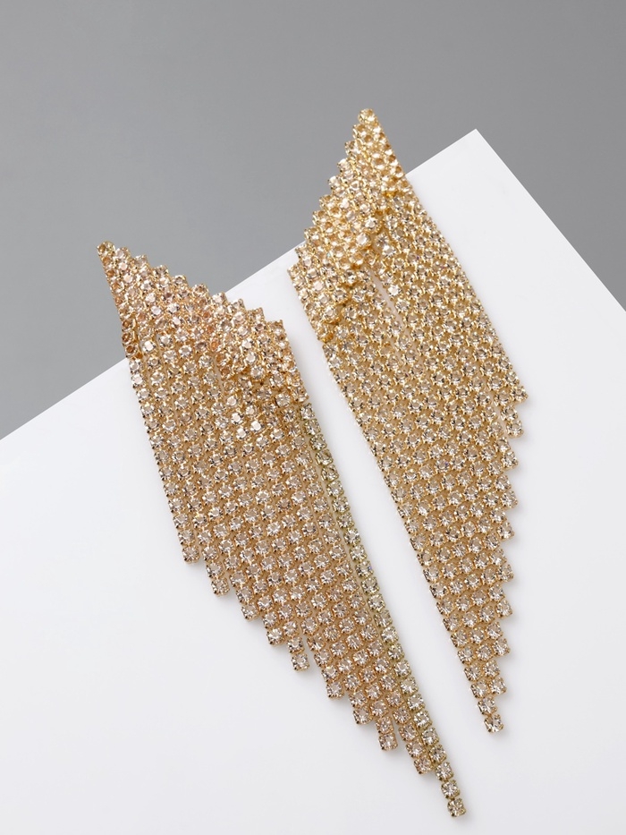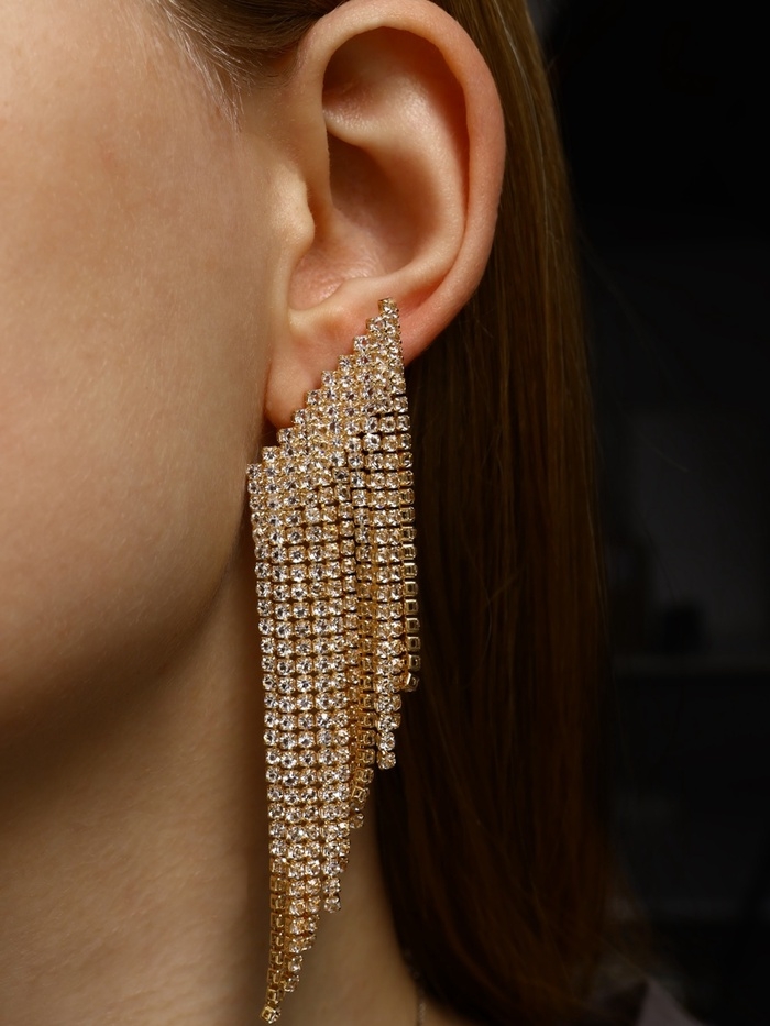 Серьги висячие со стразами «Вечное сияние» лесенка, цвет белый в золоте