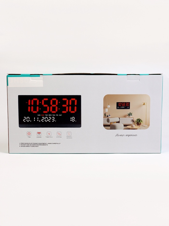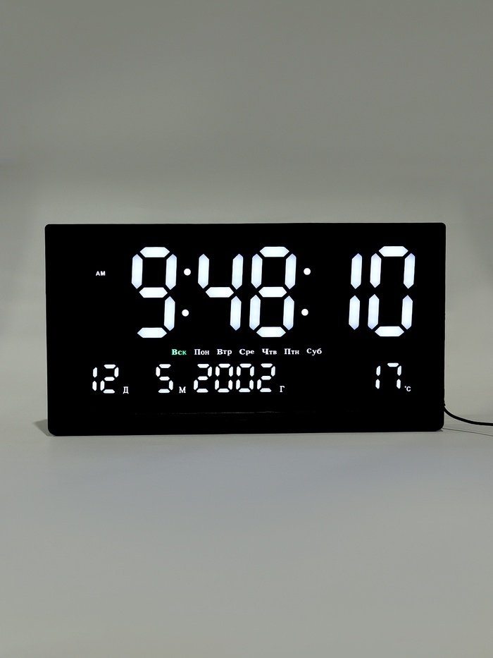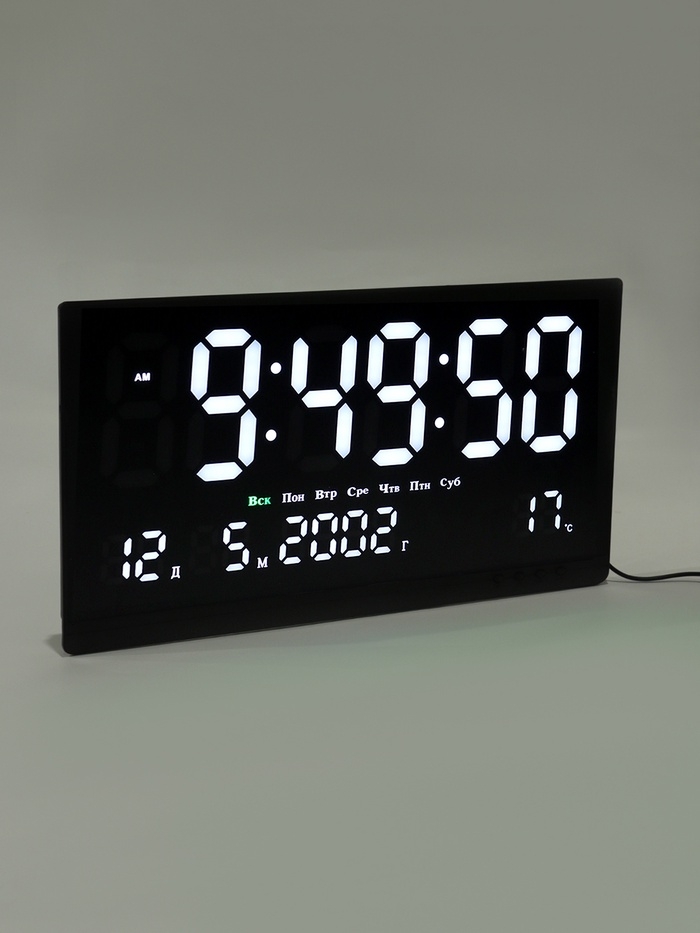 Часы электронные настенные, календарь и термометр, 47.5 х 25.3 см, белые цифры 10.8 х 5.3 см 10766