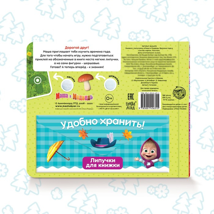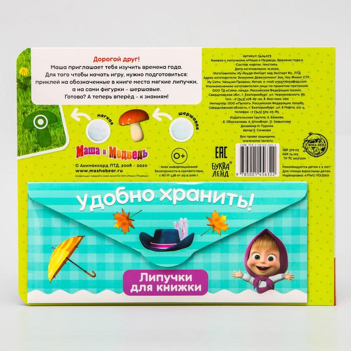 Книжка с липучками «Маша и Медведь. Времена года», 12 стр.