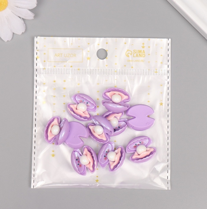Декор для творчества пластик "Ракушка с жемчужинкой" блёстки набор 10 шт 2х1,8х0,9 см