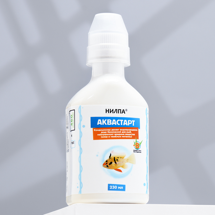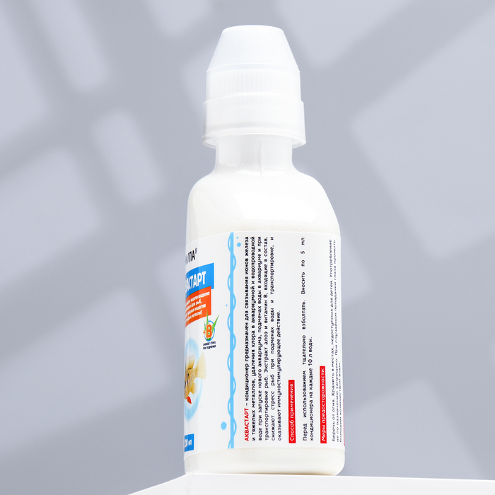 Аквастарт– кондиционер предназначен для связывания ионов железа и тяжелых металлов, удаления хлора в аквариумной и водопроводной воде при запуске нового аквариума, подменах воды в аквариуме и при транспортировке рыб. Экстракт алоэ и витамин B, входящие в состав, снижают стресс рыб при подменах воды и транспортировке, и оказывают иммуностимулирующее действие.