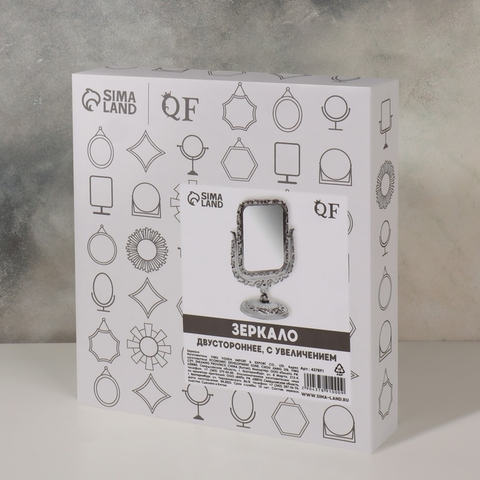 Зеркало настольное, двустороннее, с увеличением, зеркальная поверхность 10,5 × 14,5 см, цвет серебристый