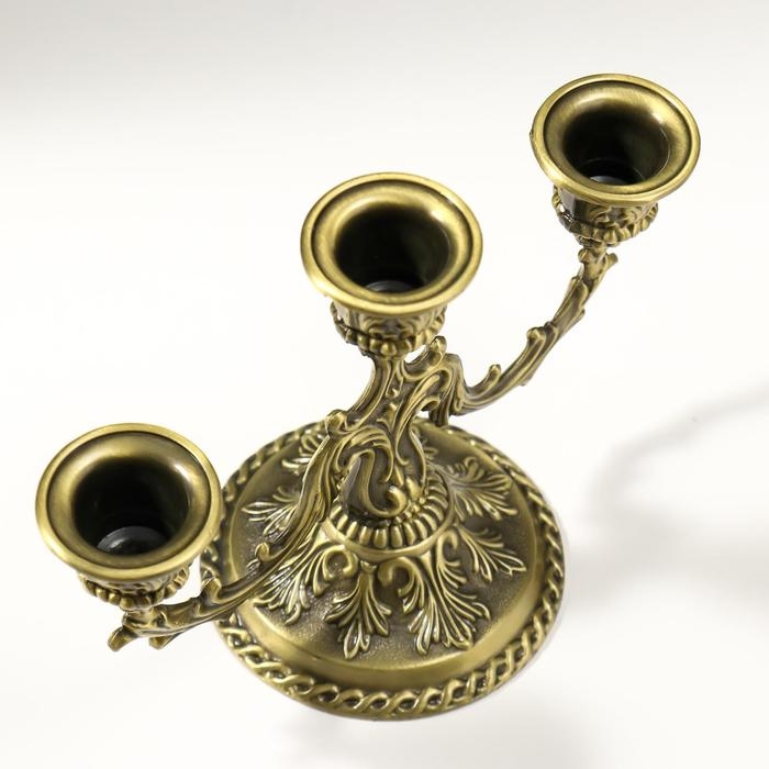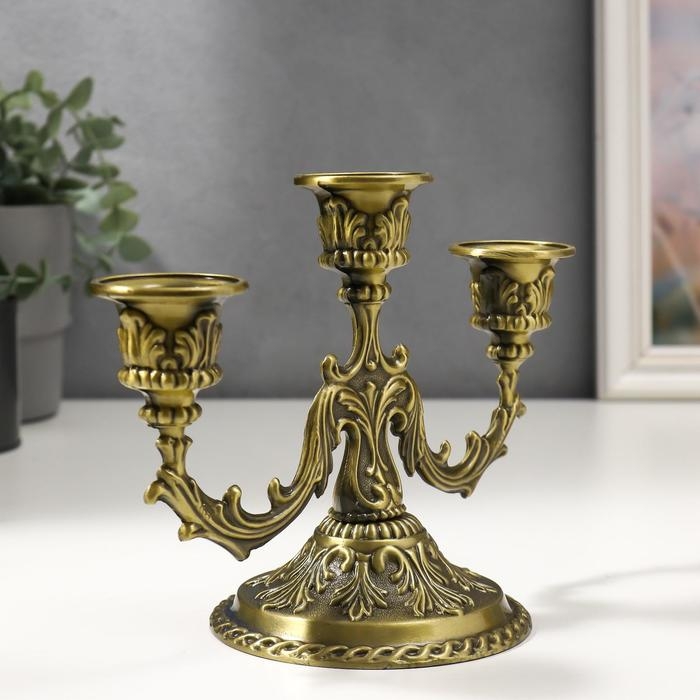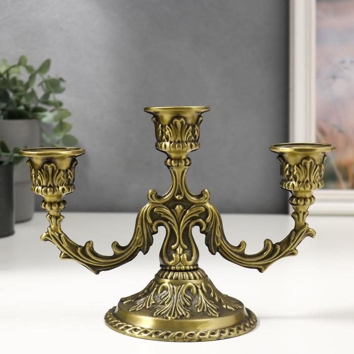 Подсвечник металл на 3 свечи "Узоры природы" цвет латуни 20х14х10 см