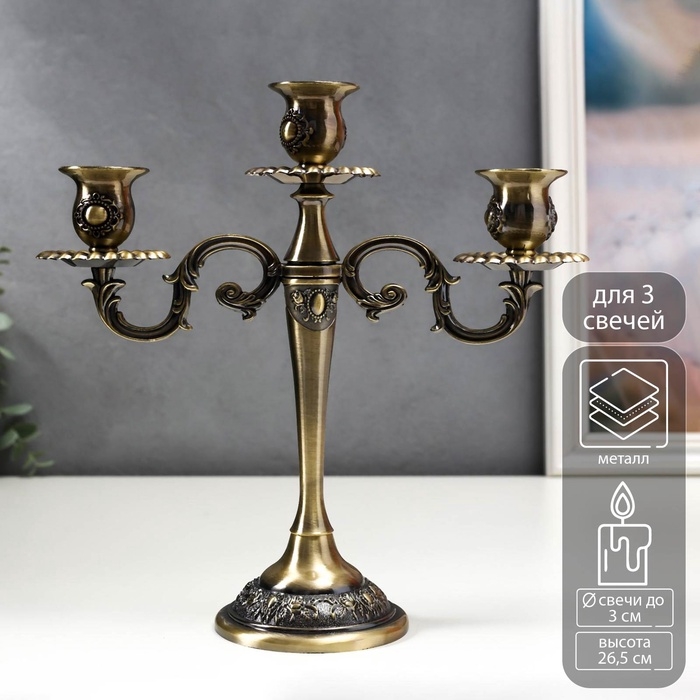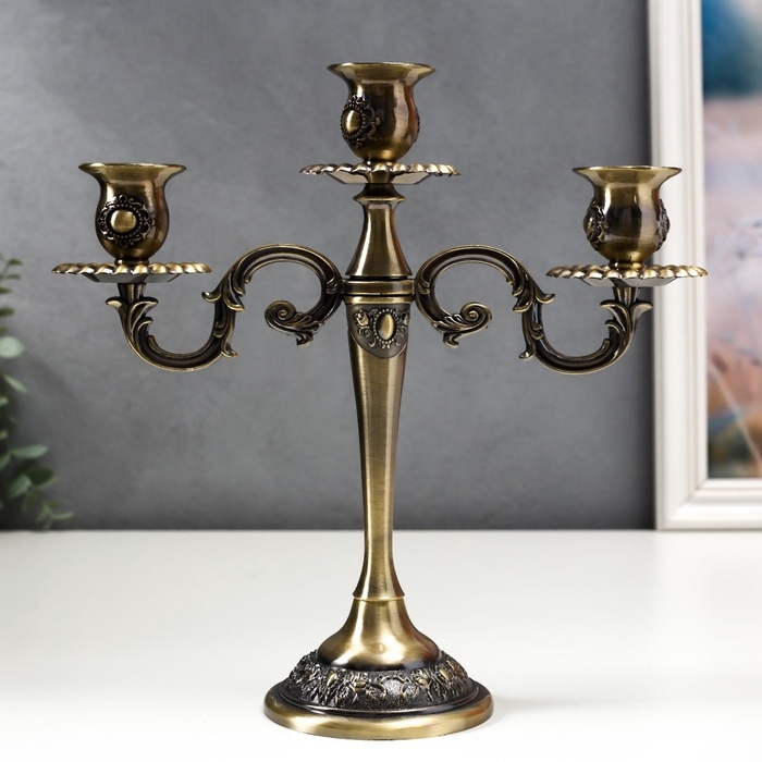 Подсвечник металл на 3 свечи "Медальон" цвет бронза 26,5х27х9,5 см