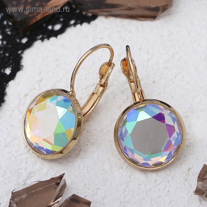 Серьги со стразами «Яркая классика» в обрамлении, цвет радужный в золоте, d=1,4 см