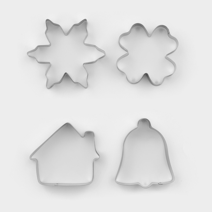 Набор форм для вырезания печенья Доляна «Снежинка. Домик. Колокольчик. Клевер», 4 шт
