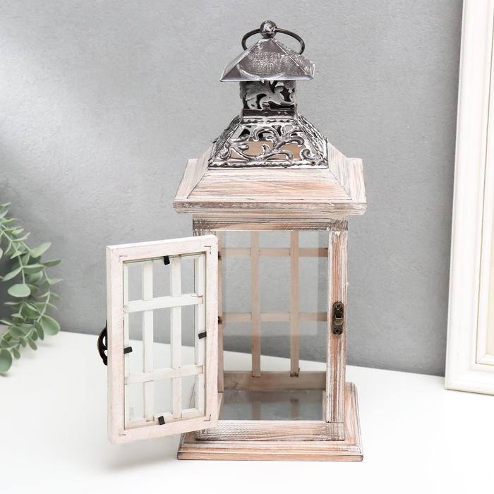 Подсвечник дерево на 1 свечу "Фонарь - большие окна" состаренный 34х14,5х14,5 см